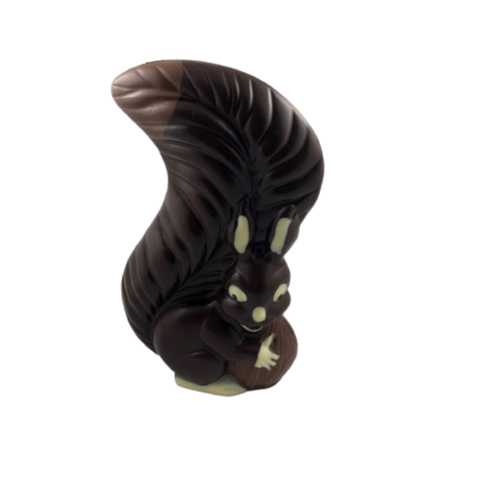 Nous vous proposons un écureuil de Pâques en chocolat noir ou lait garni d’un assortiment spécialement prévu pour les fêtes de Pâques !